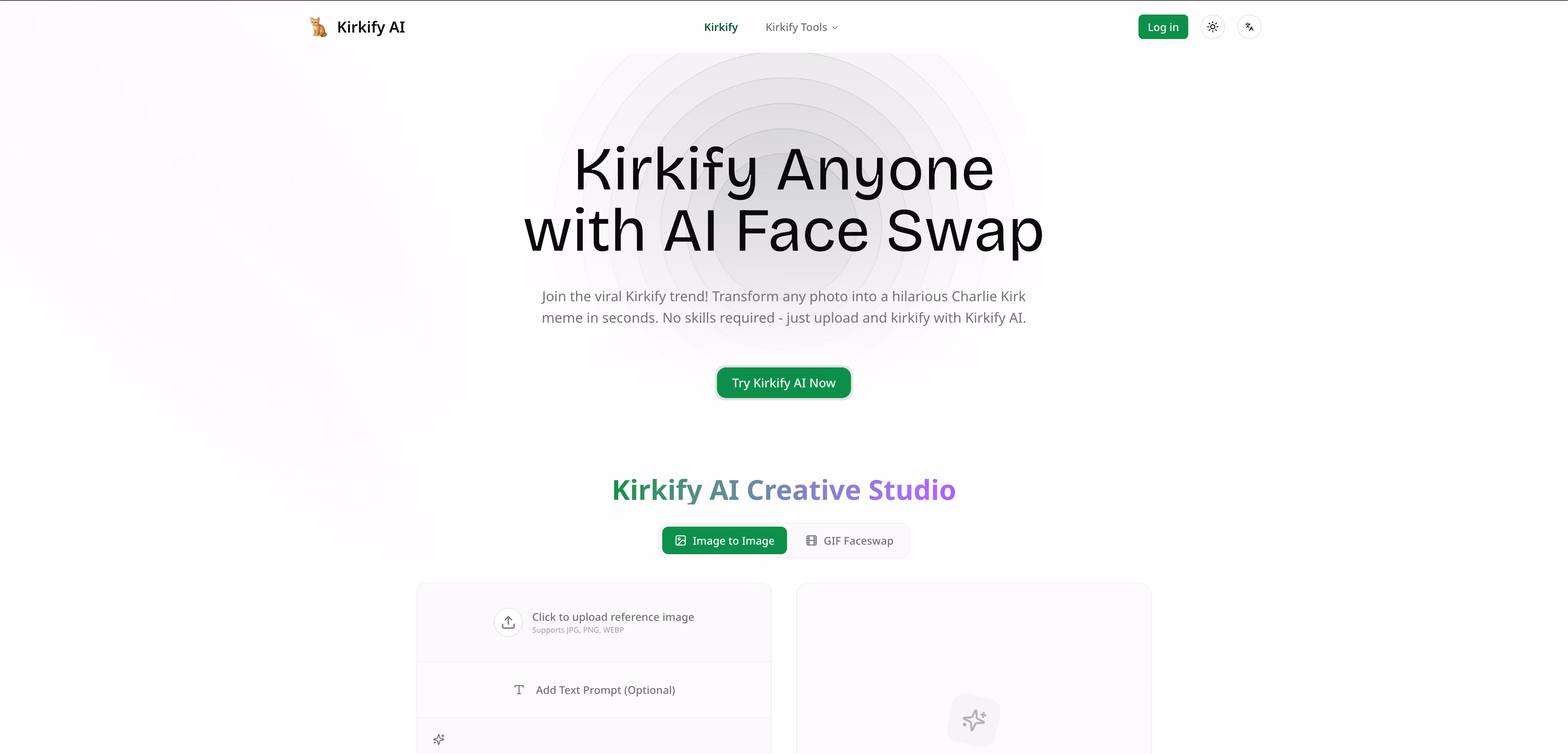 Click to view full sizeKirkify AI is an innovative face swap generator that allows users to transform any photo into a humorous meme by swapping faces with Charlie Kirk's. It's part of a viral meme trend known as 'kirkification,' where users can easily create and share altered images and videos across social media platforms such as TikTok, Reddit, and X. The platform offers a seamless, user-friendly experience with features like GIF and video support, neon effects, and batch processing for handling multiple images at once. Kirkify AI emphasizes instant results and high-quality outputs, ensuring that memes are shareable without losing detail. With no need for technical skills, anyone can upload an image or video and utilize Kirkify AI's automatic face detection and blending technologies to produce professional-looking memes in seconds. It's a popular tool among meme creators and social media influencers seeking to quickly engage with viral trends.