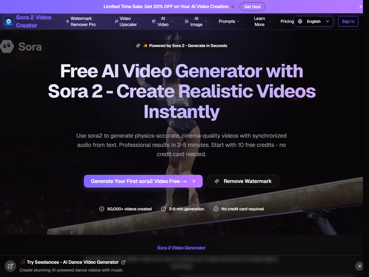 Click to view full sizeSora 2 is an advanced AI video generator designed to transform text descriptions into realistic, physics-accurate videos with synchronized audio. Accessible for both beginners and professionals, it allows users to create cinematic-quality videos in various styles, including photorealistic and anime, without the need for video editing skills. Sora 2 offers features such as AI cameo technology, multiple cinematic styles, and advanced control over video parameters like aspect ratio and duration. Users start with 10 free credits and can choose from flexible pricing plans for more usage. With the ability to insert oneself into scenes, Sora 2 provides a unique, personal touch to video creations. The platform emphasizes ease of use, speedy video generation, and creative freedom, making it suitable for a wide array of applications, from marketing and educational content to personal storytelling.