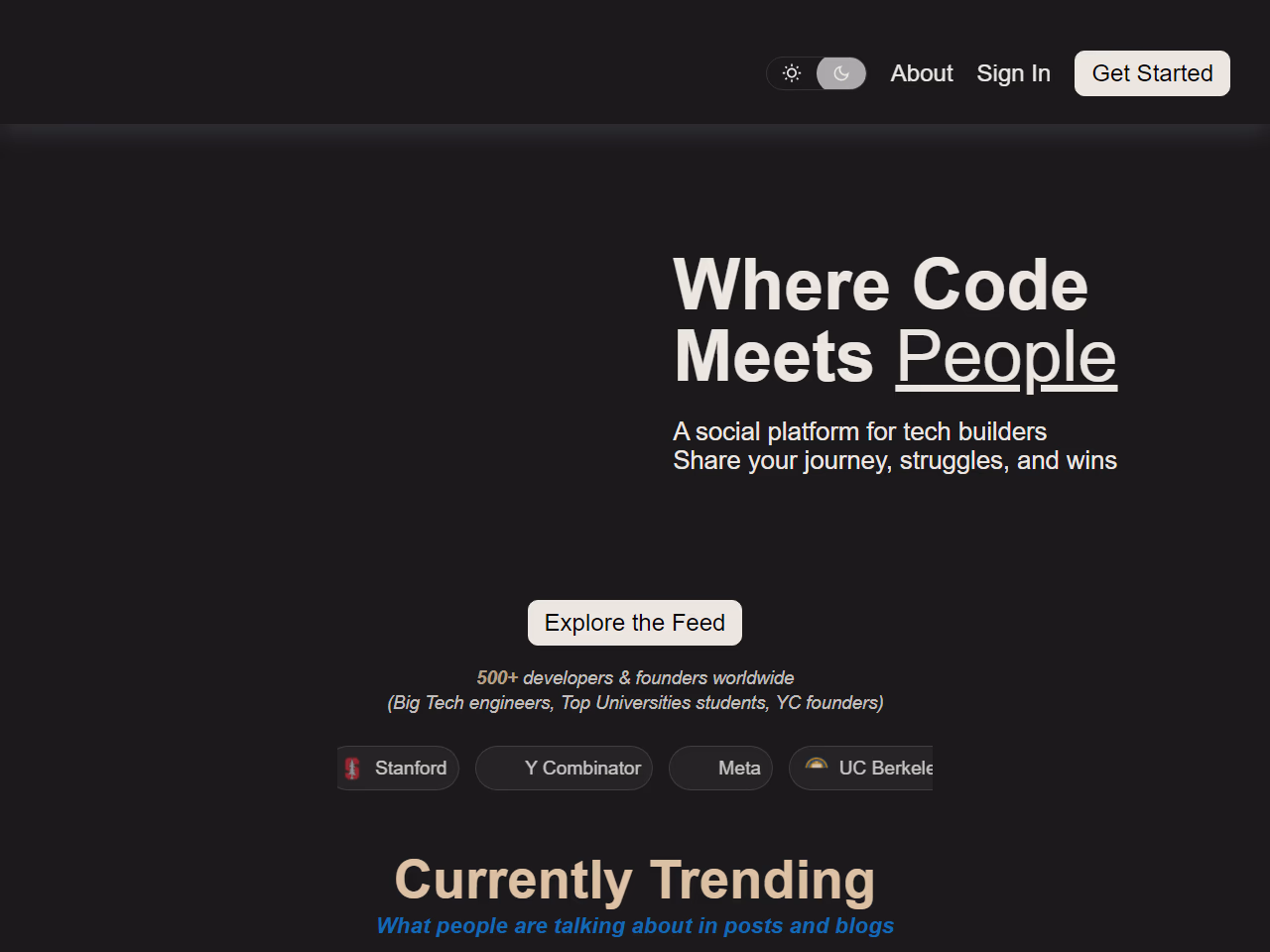 A social platform for developers/founders to post, discuss, and follow builder journeys and hackathons.