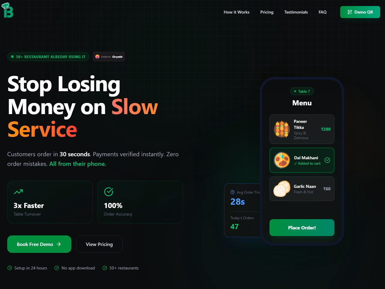 Slow, error-prone restaurant ordering and payment reduces table turnover and revenue.
