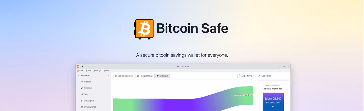 Click to view full sizeBitcoin Safe is a desktop software designed for managing Bitcoin in a secure, cold storage environment. It focuses on reducing risks associated with private key exposure by requiring hardware wallet integration and enforcing best practices for key management. The application includes guided setup flows for both single-signature and multi-signature wallets, helping users configure secure storage without needing deep technical expertise. It also provides tools for monitoring transactions through visual money flow diagrams and supports collaboration in multisig setups by enabling secure sharing of partially signed transactions. Additional features such as address poisoning detection, PDF backup generation, and label synchronization enhance usability while maintaining security. The software is open source and compatible with a wide range of hardware wallets, making it suitable for individuals prioritizing long-term Bitcoin storage and control.