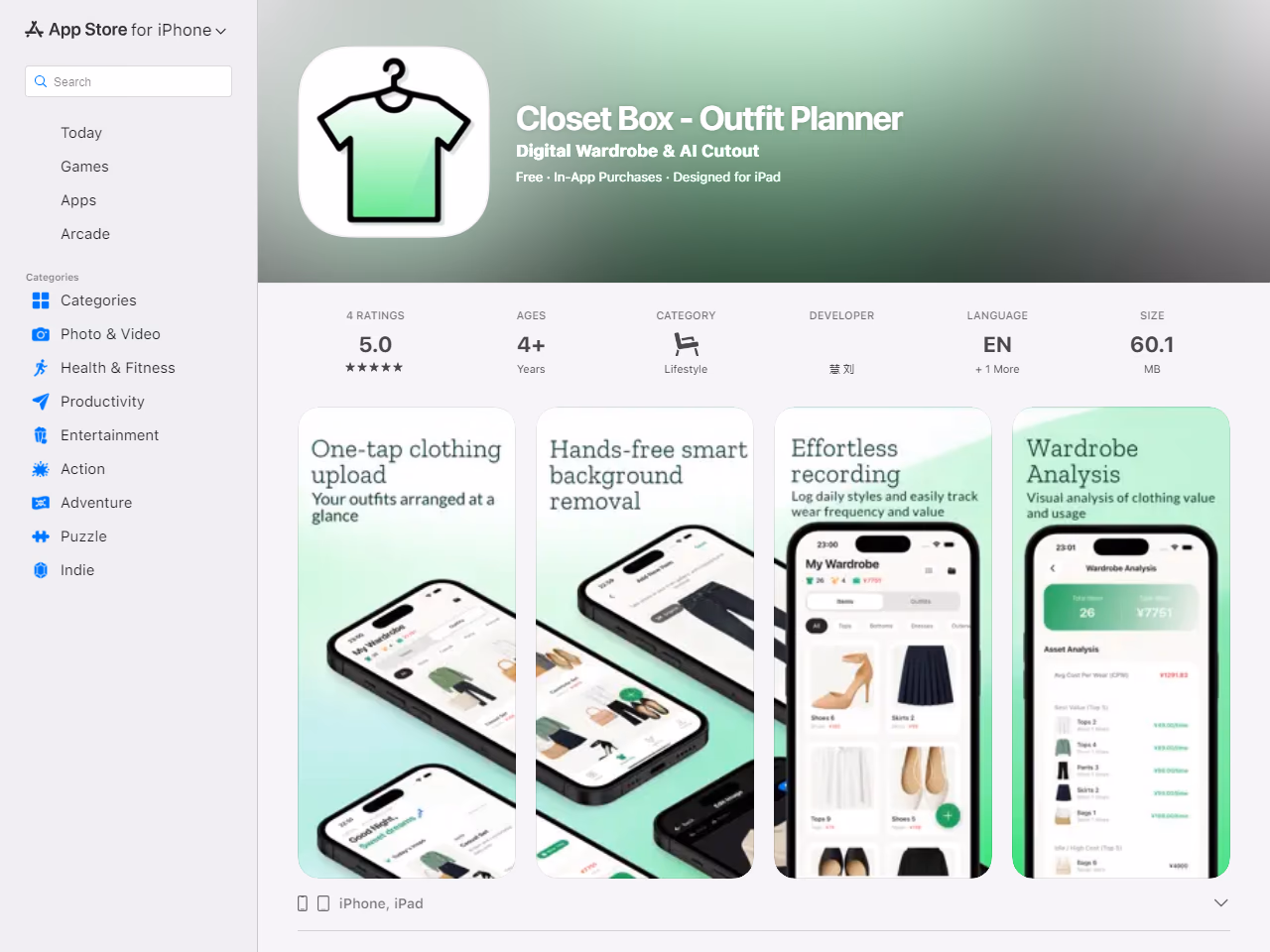 Click to view full sizeCloset Box is an AI-powered digital wardrobe organizer designed to streamline outfit planning and wardrobe management. The app uses advanced AI technology to remove backgrounds from clothing photos swiftly, creating a clean digital representation of your wardrobe. With features like smart recognition and auto-categorization, users can easily organize clothes by type, color, season, and brand. The app offers tools to help plan outfits with a mix-and-match outfit canvas, and a calendar to log and track daily outfits (OOTD). Closet Box also provides wardrobe statistics for smarter shopping and outfit scheduling to save time. Privacy is prioritized with local AI processing and iCloud sync, ensuring user data remains secure. Designed for both iPhone and iPad, Closet Box aims to simplify fashion management with a user-friendly interface and constant updates based on user feedback. Available on the Apple App Store, it offers in-app purchases for extended features.