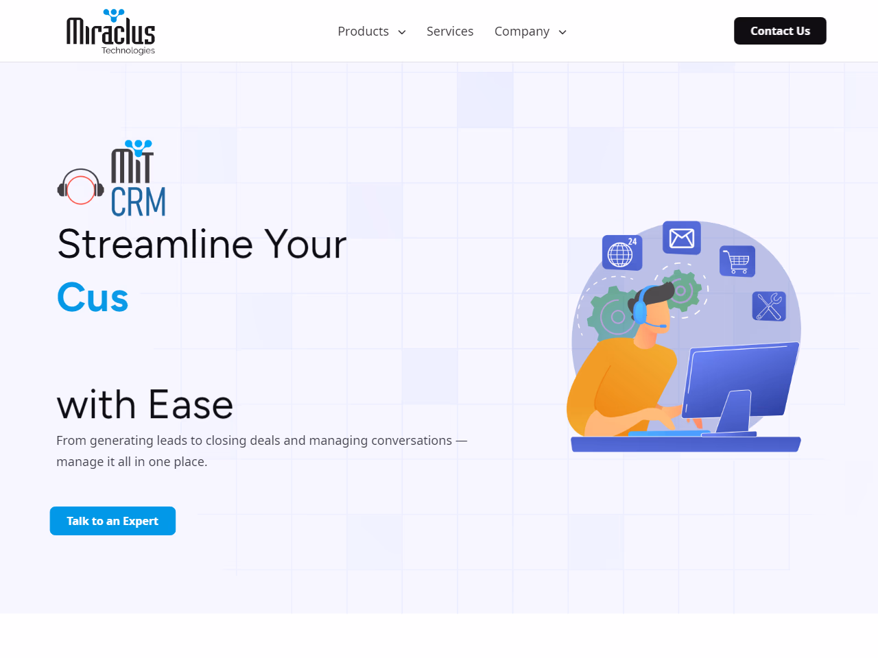 Click to view full sizeThe CRM solution by Miraclus Technologies is a comprehensive, web-based Customer Relationship Management platform designed to optimize sales processes and enhance customer engagement for businesses. It focuses on capturing and managing leads, tracking sales pipelines, automating follow-ups, and centralizing customer communications to boost efficiency and retention. The system offers features such as lead qualification, sales pipeline management, quotation and order creation, and sales reporting. It provides real-time sales insights and is customizable to fit industry-specific needs, including role-based access and reporting requirements. The CRM ensures data security and compliance with global regulations such as GDPR. It integrates seamlessly with communication and marketing tools, allowing businesses to capture leads from various channels like websites, emails, and social media. Miraclus Technologies also supports clients with end-to-end onboarding, training, and ongoing support to facilitate smooth CRM adoption and usage.