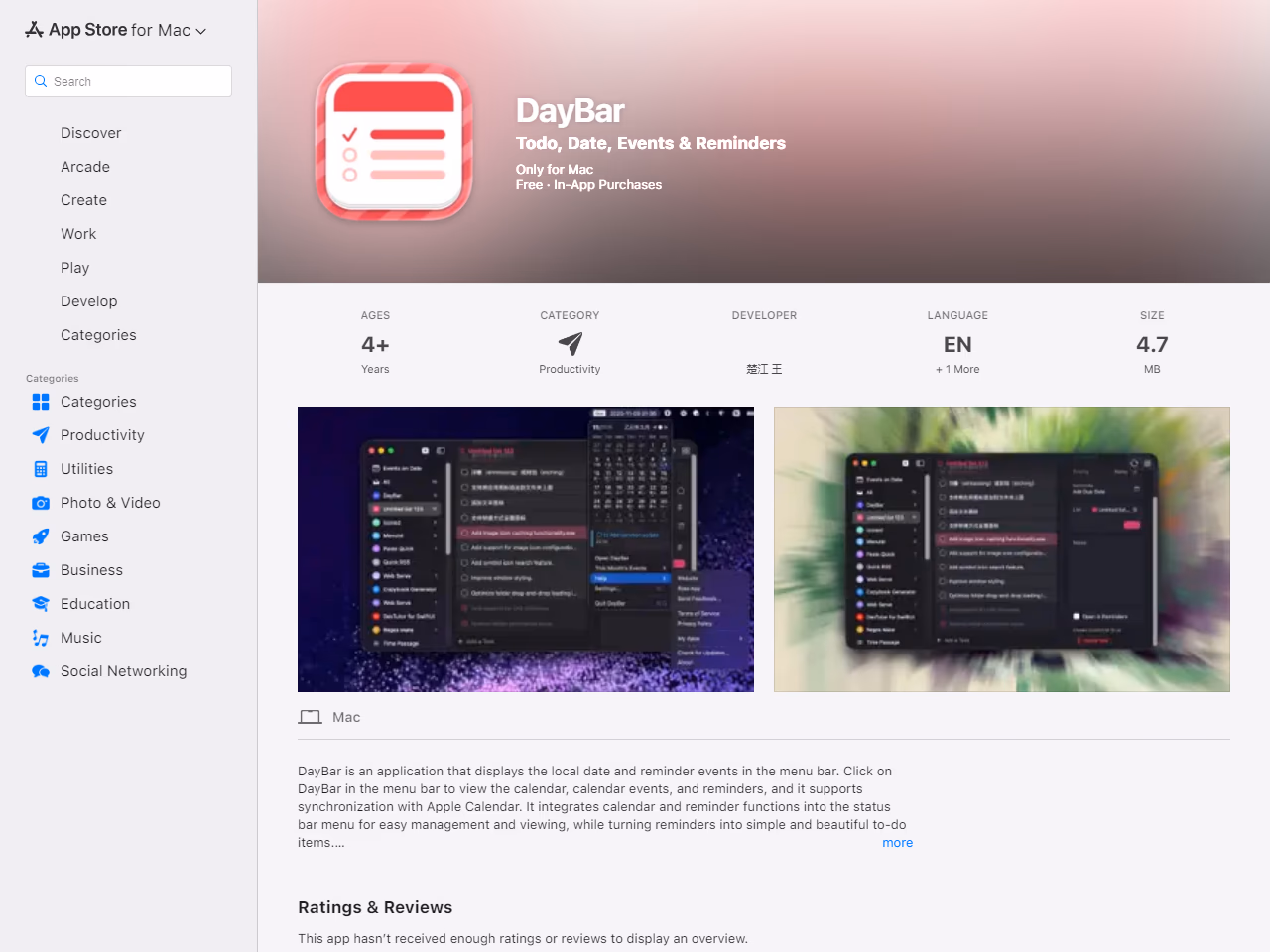 Click to view full sizeDayBar is a macOS productivity application that enhances the menu bar with date and reminder functionalities. It provides users quick access to the local date, calendar events, and reminders by integrating with Apple Calendar. Notably, it offers features such as displaying the Chinese lunar calendar, current week number, and an event indicator. Users can click on DayBar to view and manage calendar events and reminders effortlessly, turning them into simple, aesthetically pleasing to-dos. The app supports synchronization with existing calendars, ensuring that events and reminders are up-to-date. Designed for ease of use, DayBar includes settings for the sidebar menu, color customization for task categories, and offers improvements in user interface and performance in successive updates. It aims to streamline calendar management by keeping essential date-related information readily accessible in the menu bar, thus enhancing productivity for macOS users.