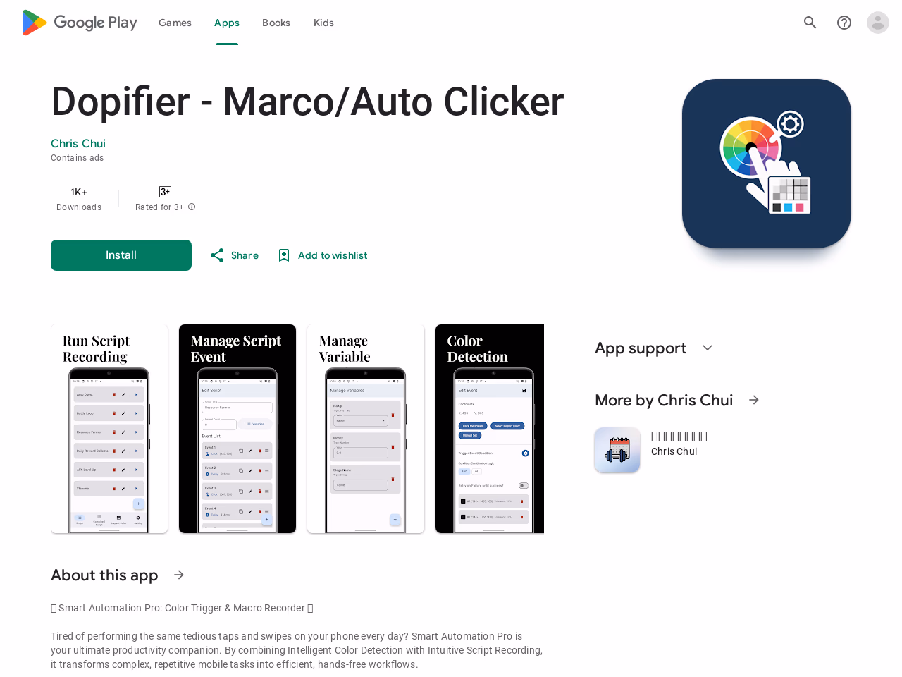 Click to view full sizeDopifier is an advanced automation tool designed for Android devices, available on Google Play. It facilitates automation of repetitive mobile tasks through features like intelligent color detection and script recording. Users can create complex workflows without coding by using condition-based color triggers, which automate actions based on specific screen states. The app captures and replays user interactions such as taps, swipes, and gestures with high precision, enabling seamless automation of routines. This is particularly useful for tasks like progress monitoring, content refreshing, UI testing, and administrative workflows. The app emphasizes user privacy by ensuring all processing is conducted locally on the device without collecting personal data. Dopifier operates using the AccessibilityService API and supports Android devices from version 8.0 onwards, providing a user-friendly interface and lightweight performance.