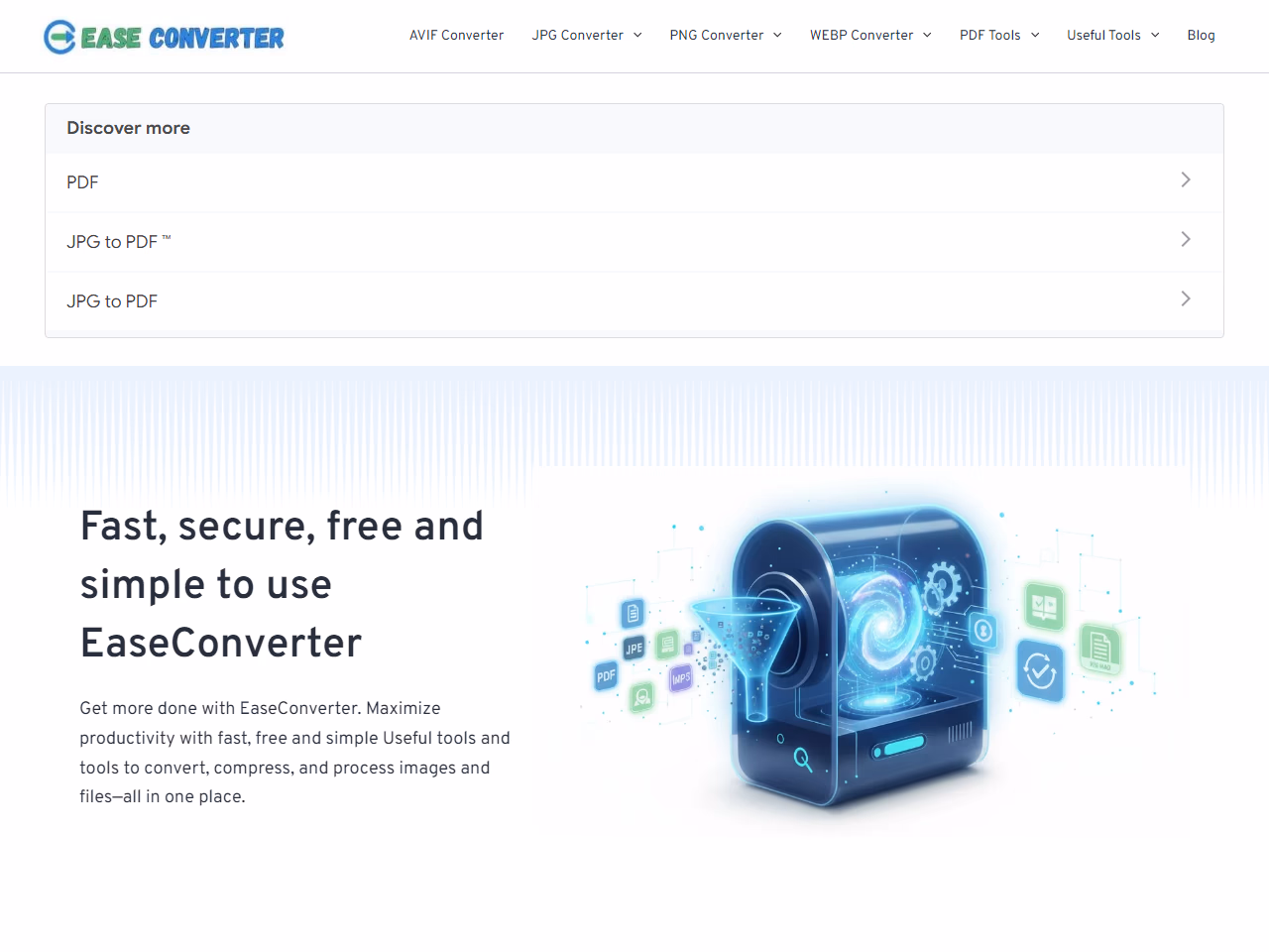 Click to view full sizeEaseconverter is a multifunctional online tool designed to facilitate quick and secure file conversions and optimizations. It provides a range of free services, including converting images between formats such as JPG, PNG, WEBP, and more specialized formats like AVIF and HEIC. Additionally, the platform offers tools for compressing and resizing images, creating WhatsApp links and QR codes, and converting images to PDFs, supporting batch file processing for increased efficiency. Easeconverter emphasizes speed, privacy, and ease of use, allowing users to perform tasks directly in their browser without needing to upload files to a server. This ensures user data remains private and secure, while the intuitive interface makes these powerful tools accessible to users of all technical levels.