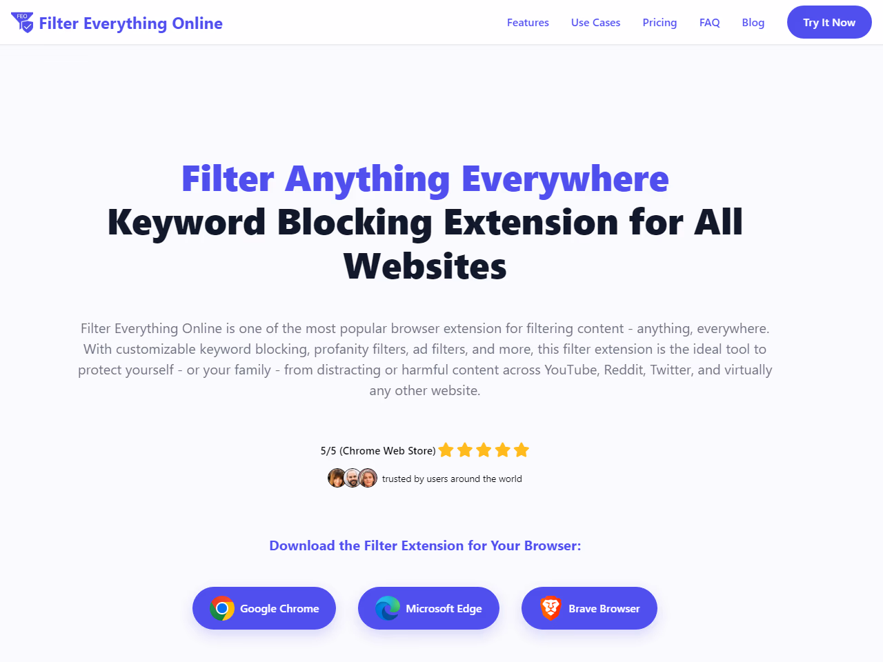 Click to view full sizeThe "Filter Everything Online" browser extension offers a comprehensive content filtering service for users looking to control their online experiences. It enables keyword blocking, profanity filters, and ad filtering across websites like YouTube, Reddit, and Twitter, providing users the ability to create a personalized and distraction-free browsing environment. The tool is versatile, supporting browsers like Chrome, Edge, and Brave, with Firefox compatibility planned for the future. Users can enjoy functions such as unlimited keyword customization, site-specific exceptions, scheduled filtering, and monitoring of filtering statistics. The premium version unlocks additional features, including AI-powered content filtering and ad blocking. Emphasizing privacy, the extension operates locally without accessing user data. It aims to enhance mental well-being, productivity, and safe browsing, making it suitable for both personal and family use.