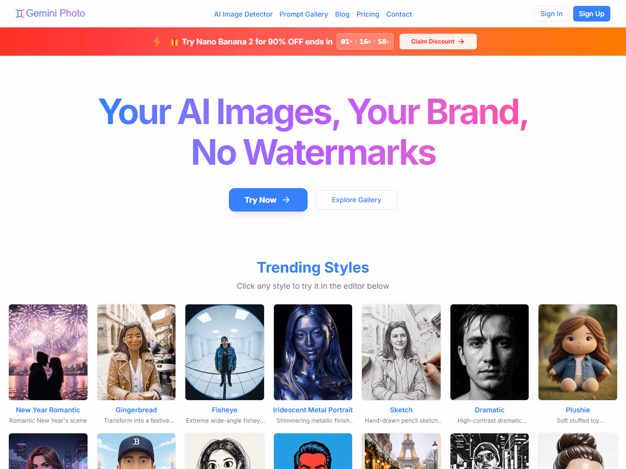 Click to view full sizeGemini Photo is an AI-powered image editing tool designed to transform ordinary images into high-quality, professional visuals swiftly and effortlessly. Utilizing the Nano Banana Pro model, the tool offers a range of styles and effects, including options like fisheye distortion, iridescent metal finishes, and retro anime art styles. Users can enhance images using both "Text to Image" and "Image to Image" functionalities, with settings for aspect ratio and output format adjustments. The platform also provides personalized presets for social media content, such as TikTok and YouTube, aimed at optimizing visual appeal. With the promise of no watermarks, Gemini Photo allows users to integrate these edits seamlessly into their brand presence. The tool is part of a tiered pricing plan aimed at offering accessible entry points for individuals looking to enhance their creative capabilities without a hefty financial commitment.