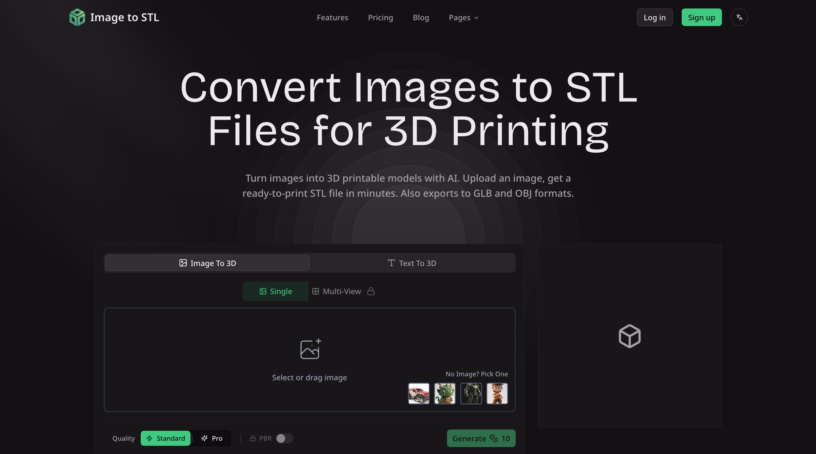 Click to view full sizeImage to STL Introduction For 3D printing enthusiasts, designers, and creators, the barrier between imagination and physical reality has always been the complex process of 3D modeling. Image to STL shatters that barrier by leveraging advanced AI to intelligently convert flat images into fully realized, three-dimensional STL files ready for your printer. This web-based tool democratizes 3D model creation, turning a process that once required hours of specialized software expertise into a task completed in minutes. Image to STL is a specialized AI converter that analyzes the depth, contours, and luminance of a 2D image to generate a corresponding 3D mesh. It interprets visual data to create height maps, extruding shapes and creating relief based on image contrast and detail. The core value lies in its speed, accessibility, and direct export to industry-standard 3D printing formats, bypassing traditional, complex modeling pipelines. Key Features AI-Powered Depth Conversion: The tool's engine doesn't just extrude shapes uniformly. It analyzes your image to intelligently infer depth and topography, creating more nuanced and accurate 3D geometry from photographs, logos, or illustrations. Multi-Format Export: Don't get locked into a single file type. Export your generated models directly to STL, GLB, or OBJ formats, ensuring compatibility with virtually any slicer software or 3D modeling suite. Web-Based & Instant Processing: There's no software to download or install. Upload an image from your device and receive a processed 3D model in minutes, with all computation handled securely in the cloud. User-Friendly Preview Interface: Before downloading, inspect your model from all angles. The integrated viewer provides front, back, left, and right perspectives to verify the conversion quality and model integrity. Support for Common Image Types: Start with what you already have. The tool accepts standard image formats, making it easy to convert existing logos, drawings, or photos without prior conversion. Who Is This For? 3D Printing Hobbyists & Educators: Quickly create custom lithophanes, personalized keychains, or educational models from textbook diagrams without learning CAD. Perfect for makerspace projects or STEM classroom activities. Product Designers & Prototypers: Generate initial 3D concepts from 2D sketches or mood board images. Rapidly iterate on form factors before moving into detailed CAD work, speeding up the early ideation phase. Small Business & E-commerce Owners: Produce unique, customized merchandise. Convert a company logo into a 3D stamp, a branded figurine, or textured paneling for physical products, adding a new revenue stream. Artists & Digital Creators: Bridge the gap between digital art and physical sculpture. Transform digital paintings, character art, or graphic designs into tangible art pieces, unlocking new mediums for creative expression. Under the Hood The platform operates as a streamlined web application, requiring only a modern browser. Its AI processing leverages sophisticated algorithms for image analysis and mesh generation, handling the computational heavy lifting server-side. This architecture ensures users don't need powerful local hardware. While the core conversion is automated, the tool provides essential preview controls to assess the output, giving you confidence before committing to a print. Get Started Getting started is straightforward. Navigate to the website, upload your chosen image file, and let the AI process it. You'll be presented with a 3D preview to examine. If satisfied, select your preferred output format (STL, GLB, or OBJ) and download the file directly to your computer for slicing and printing. Image to STL turns visual inspiration into physical possibility, making 3D creation an accessible skill for anyone with an image and an idea.