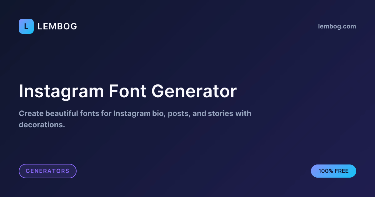 Click to view full sizeLembog's Instagram Font Generator is a tool designed to enhance your Instagram presence by transforming standard text into stylish Unicode fonts. It allows users to create eye-catching bios, posts, and stories without needing an additional app. Capitalizing on Instagram's support for Unicode characters, the tool offers a variety of font styles including cursive, gothic, and bold, catering to different aesthetics such as elegant, dramatic, and playful. It's user-friendly, requiring only text input to generate and copy the desired styles, which can be directly pasted into Instagram fields like bios and captions. The tool ensures compatibility across devices and advises on best practices to maintain readability and brand consistency while using these fonts. Additionally, Lembog ensures privacy by processing all data locally in the user's browser.