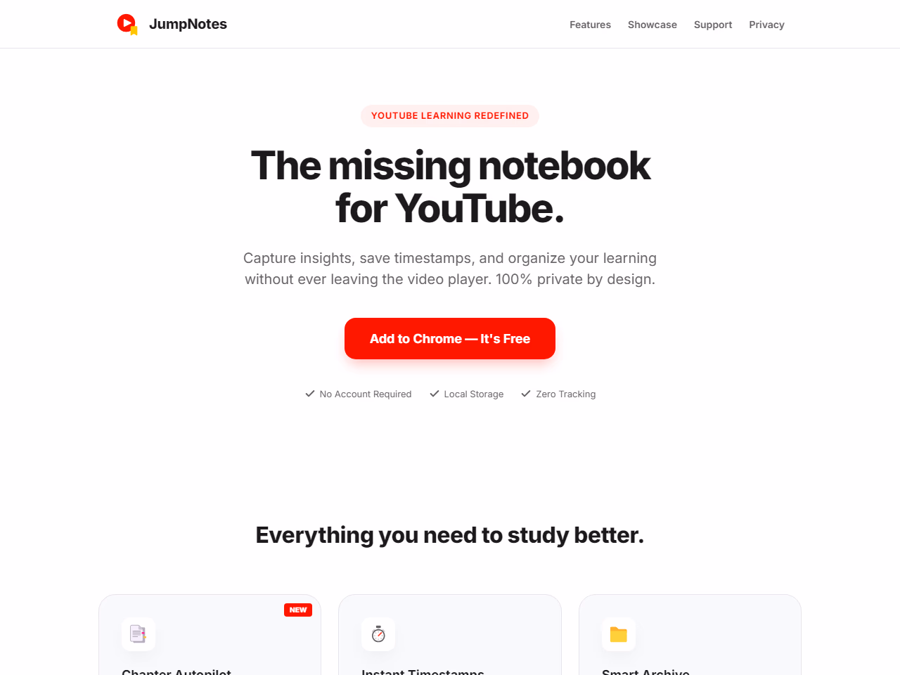 Chrome extension saves private local notes with timestamps, chapters, export, shortcuts.