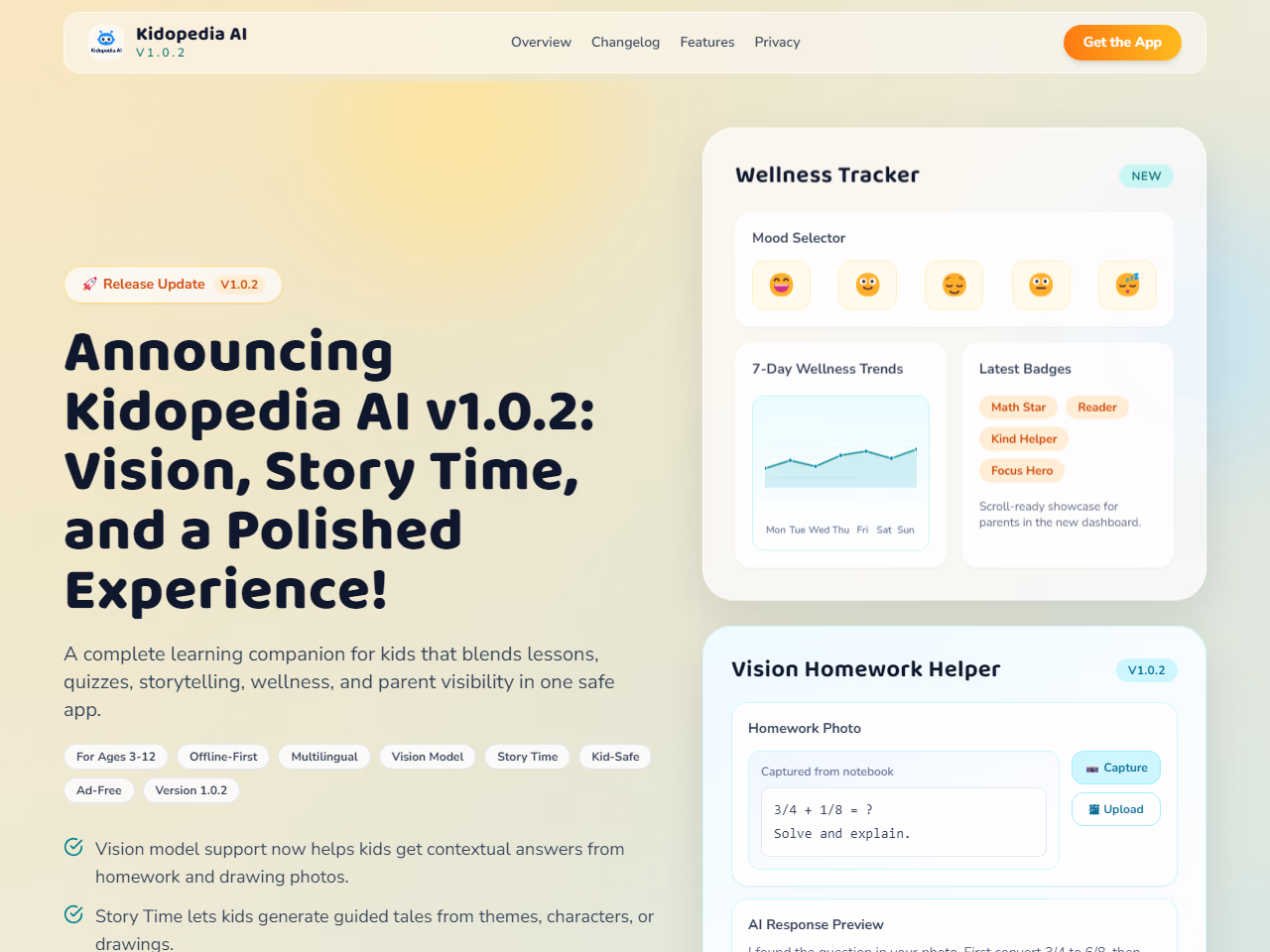 Offline, on-device AI tutor for kids with zero data collection and no ads.