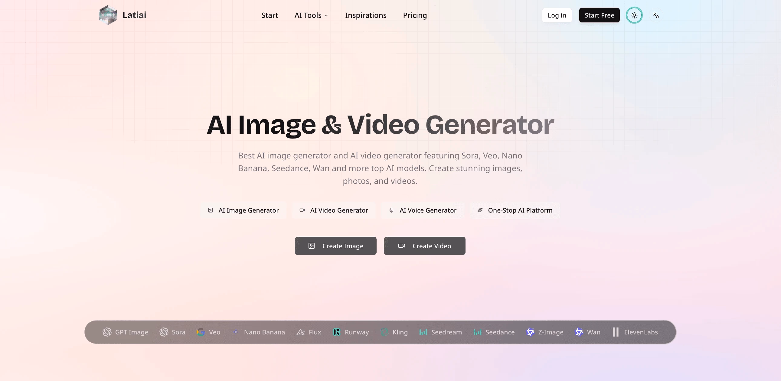 Click to view full sizeLatiai is an all-in-one AI generation platform focused on creating images and videos from text or existing media. It brings multiple AI models into a single interface, including options named Sora, Veo, Nano Banana, Flux, Wan, Seedance, Kling, Runway, Seedream, and GPT Image. The site offers tools for text to image, image to image (photo editing and transformation), text to video, and image to video (animating still images). It also includes a gallery where users can browse community creations, view prompts, and reuse them. The UI emphasizes quick generation, selectable output counts, aspect ratio and resolution choices up to 4K for images, plus advanced settings and history. The product positions itself as a single place to access and compare different AI models for visual content creation.