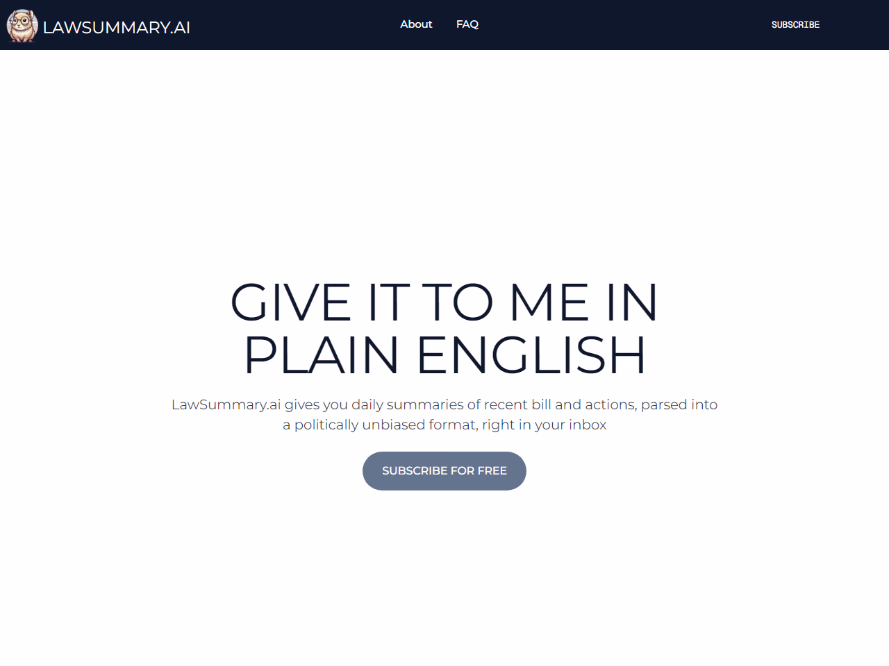 Click to view full sizeLawSummary.ai is a service that provides daily summaries of federal legislation delivered directly to users' email inboxes. The tool focuses on transforming complex congressional bills into concise, plain English descriptions, making it easier for subscribers to understand new laws without legal jargon. Designed to be politically unbiased, LawSummary.ai uses AI to generate these summaries, ensuring users stay informed about legislative changes without spending excessive time interpreting dense legal documents. This tool is ideal for individuals seeking a straightforward way to keep up with governmental developments and legislative impacts. Subscriptions are available, with a free trial period offered, ensuring accessibility and convenience for users who want to stay updated effortlessly.