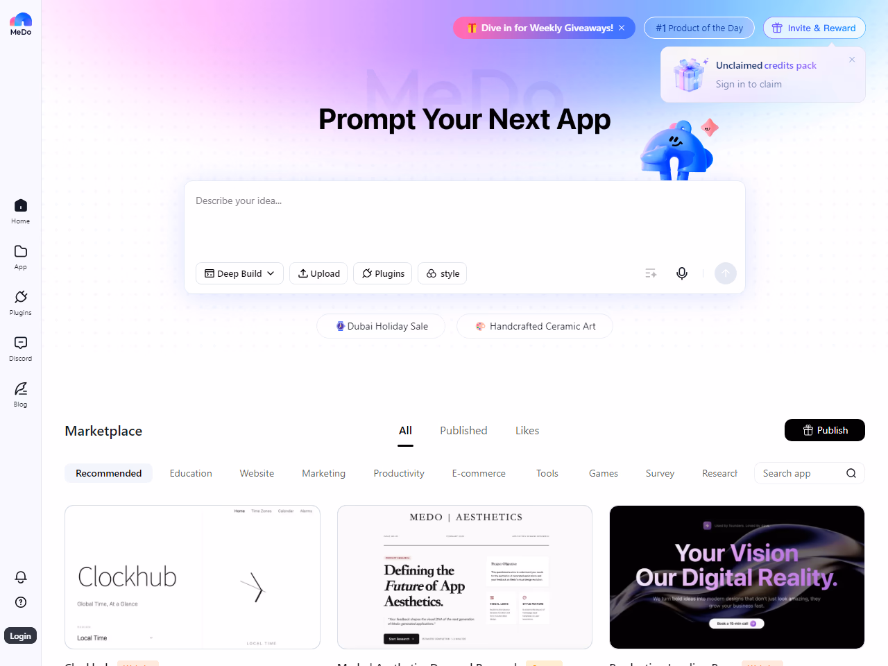 Click to view full sizeMedo is a code-free app builder designed to streamline the development of full-stack applications and websites. Leveraging AI, Medo automates the creation of frontend, backend, and database components, significantly reducing development time and cost. This tool empowers users from various domains—including education, e-commerce, and productivity—to quickly build responsive, production-ready solutions without the need for programming skills. Medo offers a wide array of templates and AI-driven features that cater to diverse needs, from landing pages and e-commerce sites to unique interactive experiences. Its focus on user-friendly design enables individuals and businesses to harness the power of technology to innovate and enhance their digital presence efficiently.