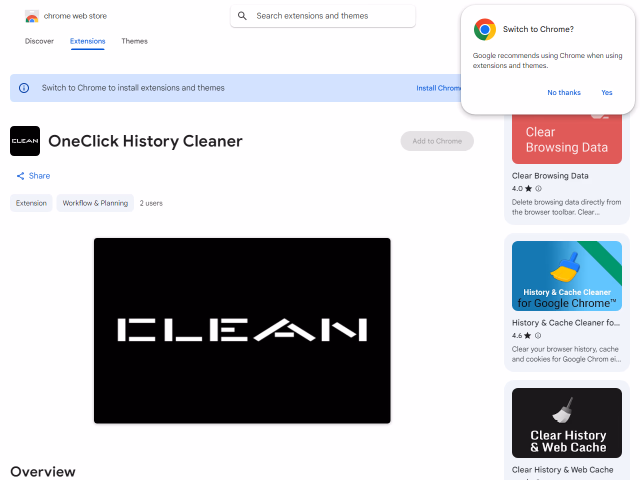 Click to view full sizeOneClick History Cleaner is a browser extension available on the Chrome Web Store designed for users who want to easily manage their browsing history. With a single click, you can clear your Chrome history for the day, week, or all time, making it a straightforward solution for routine privacy maintenance. The tool is geared towards simplicity and efficiency, appealing to everyday users who prefer a direct approach to history management without additional complexities. The extension is developed by LazyPixel and ensures user data is not sold or misused, focusing solely on its core functionality. It stands as a minimalistic yet effective option among similar browser cleaning tools.