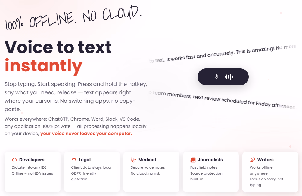 Typing is slow; users need fast private dictation on Windows.