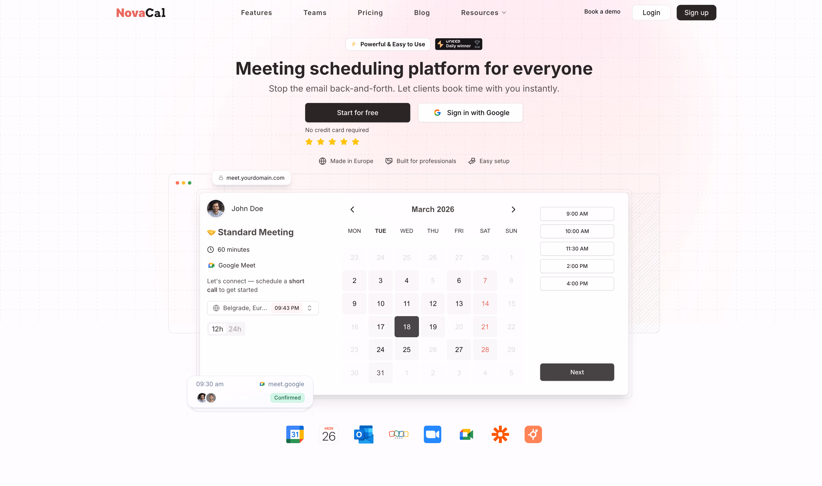 Click to view full sizeNovacal is an online appointment scheduling software designed to streamline the process of booking meetings without the hassle of back-and-forth emails. It offers a comprehensive suite of tools to boost productivity and simplify scheduling for professionals and teams. Users can sync their calendars to avoid conflicts, define their availability, and share booking links to let others easily find suitable times for meetings. Novacal supports individual and group meetings, integration with popular apps, customizable notifications, and brand personalization. It provides features like API access, team management, and a post-booking flow to enhance user experience. With a free basic plan and an upgrade option for more advanced features, Novacal positions itself as a versatile solution for effortless meeting planning.