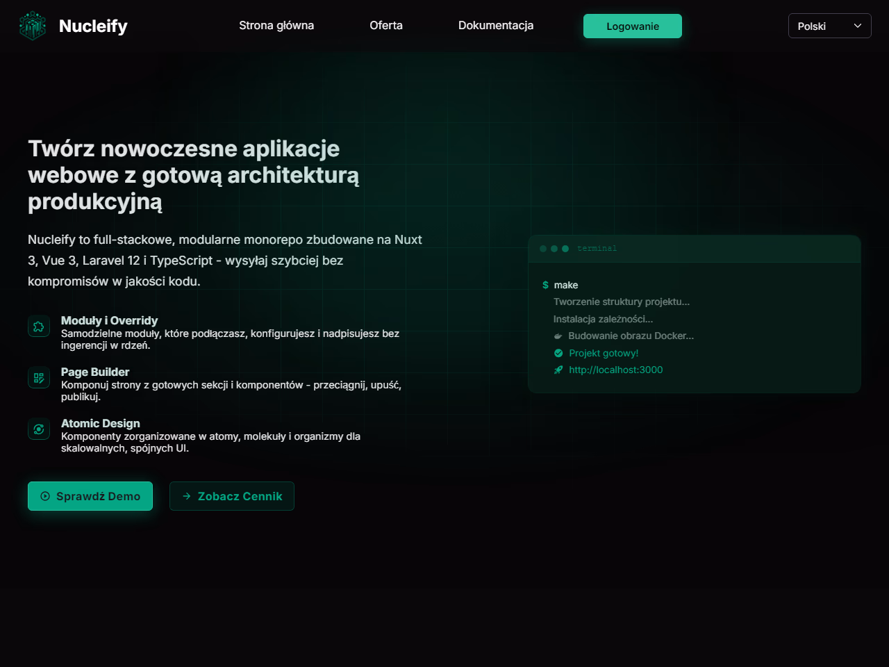 Click to view full sizeNucleify is a modular web framework designed for creating scalable web applications with Laravel and Nuxt. It leverages a full-stack, modular monorepo architecture using Nuxt 3, Vue 3, Laravel 12, and TypeScript. The framework facilitates rapid development without compromising code quality by providing ready-made production architecture. Nucleify offers independent modules that can be easily configured, extended, or overridden, allowing developers to customize their projects without altering the core. Features include a page builder for composing sites from pre-built sections, an atomic design system for consistent UI patterns, and a robust backend with advanced CRUD and role-based access control functionalities. Nucleify's mobile-first design ensures optimal responsiveness, and its API-first approach maintains synchronization between frontend and backend. Additionally, developers benefit from built-in testing tools, automated CI/CD workflows, and a theme engine for dynamic UI personalization. This makes Nucleify an efficient tool for developers seeking a streamlined workflow in building modern web applications.