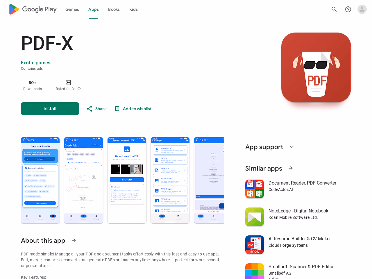 Click to view full sizePDF-X is a versatile mobile application designed to streamline PDF and document management tasks efficiently. It allows users to edit, merge, compress, convert, and generate PDFs and images quickly and easily. The app supports various operations such as adding text, images, highlights, annotations, and signatures to PDFs. Users can also merge multiple PDF files, extract specific pages, compress files without quality loss, and convert documents between formats like Word, Excel, PowerPoint, and PDF. The app also facilitates converting images to PDFs and vice versa, combining multiple images, and converting or compressing image files. With a user-friendly interface, PDF-X enhances productivity for students, professionals, or anyone needing comprehensive document management capabilities on the go. It provides data privacy and security, with no information sharing with third parties, making it a reliable choice for handling sensitive documents.