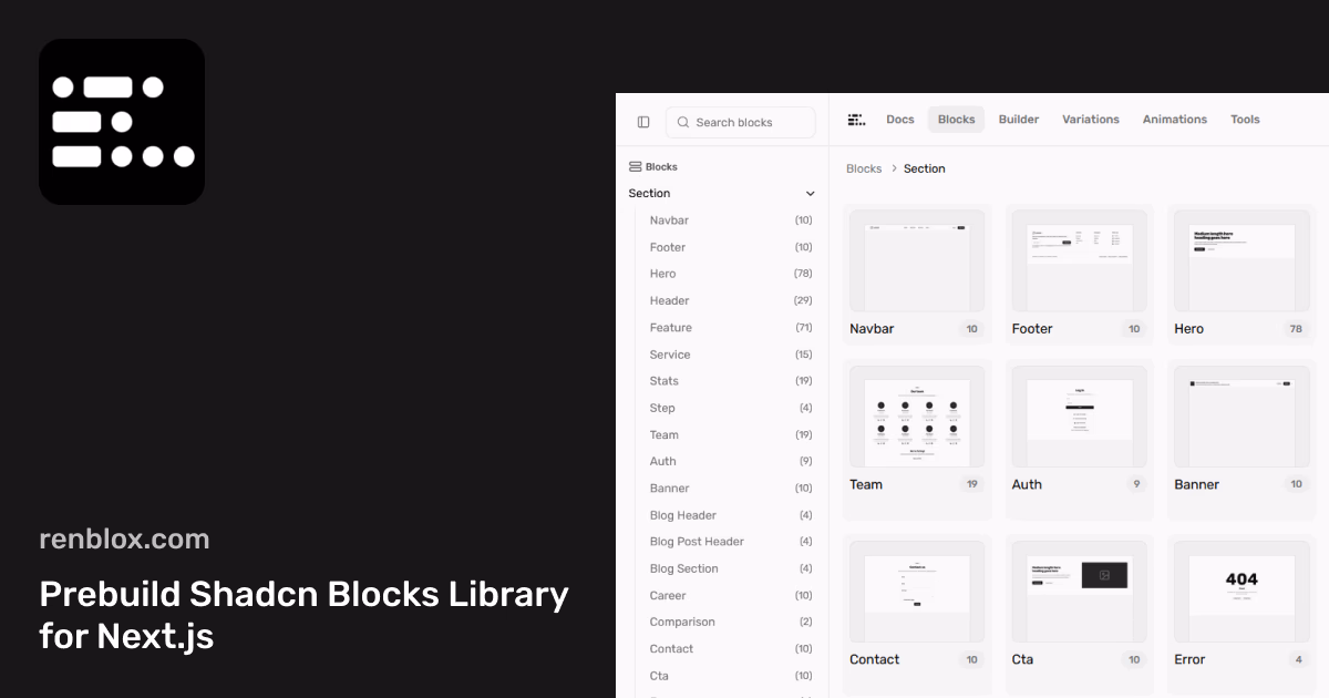 Click to view full sizeRenblox is a comprehensive library offering over 450 prebuilt, type-safe section blocks specifically designed for use with Next.js. Built using Shadcn/UI, it aims to streamline and accelerate development workflows by providing ready-to-use, customizable blocks that are optimized for modern web projects. Developers can utilize Renblox to quickly construct wireframes and low-fidelity layouts without the need to rewrite UI components, ensuring consistency and speed in development. It's particularly beneficial for developers, startups, and SaaS teams seeking to minimize UI redundancy and decrease build times. With features like varied UI components, a visual page builder, and built-in animations, Renblox supports the creation of efficient, scalable, and visually appealing interfaces, making it a valuable tool for maintaining clean and reusable UI patterns across projects.