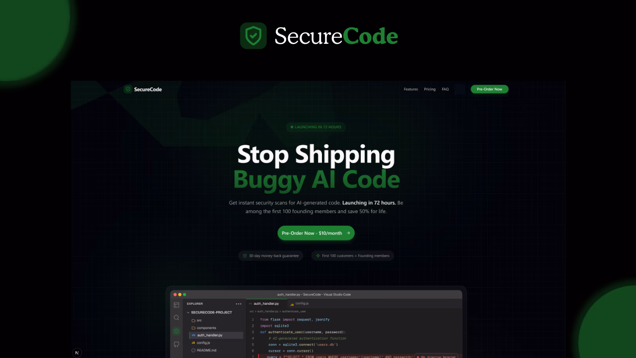 Click to view full sizeSecureCode is a security scanning tool designed to provide real-time vulnerability detection for developers. It integrates seamlessly with popular code editors like VS Code, Cursor, and Antigravity, offering instant feedback to catch vulnerabilities before code is shipped. SecureCode employs a multi-layered approach, combining deterministic static analysis with AI-driven techniques to identify and verify security issues. The tool's pipeline includes multiple stages: Semgrep for baseline analysis, Scout AI for pattern detection, and Juror AI for independent verification. Additionally, SecureCode's Fixer generates secure patches, tested against several bypass techniques to ensure robustness. The service offers flexible pricing plans, catering to both casual and professional developers, including a free tier for basic usage and a pro subscription for more frequent scanning and support. It complements existing AI code editors by focusing on verification to enhance code security without disrupting developers' workflow.