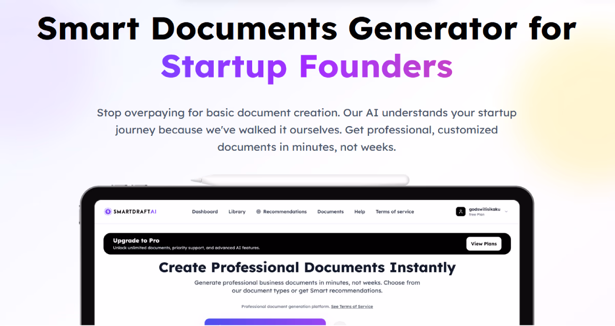 Click to view full sizeSmartDraftAI is an AI-powered platform designed to streamline legal documentation for startups and small businesses. It offers an innovative solution that allows users to generate a wide range of legally sound documents such as NDAs, contracts, and policies quickly and efficiently. By leveraging AI, the platform eliminates the need for templates and complex legal jargon, providing fast, accurate, and customized documentation. SmartDraftAI focuses on user convenience with a natural conversation-based input system, tailored recommendations, and a simple, intuitive editor. It addresses common challenges faced by startups, including legal complexity and high costs, by offering an affordable and quick alternative to traditional legal services. While the platform assists in drafting documents, it does not provide legal advice, ensuring compliance with legal practice regulations. With built-in jurisdictional awareness and bank-grade security, SmartDraftAI offers a reliable and secure way to manage business documents, with global support starting in Africa and plans for broader international expansion.