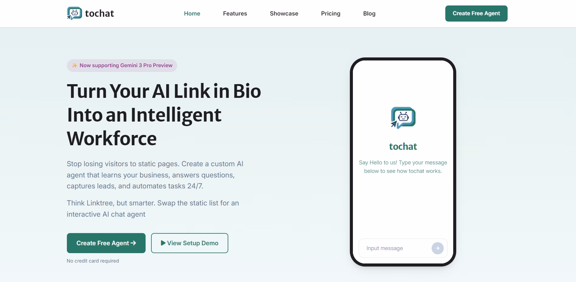 Click to view full sizeTochat is an advanced AI-driven tool designed to transform static bio links into interactive and intelligent agents. Its primary function is to enhance online engagement by providing businesses with customizable AI chat agents that can answer questions, capture leads, and automate tasks around the clock. Unlike conventional static link platforms like Linktree, Tochat equips users with dynamic chat capabilities, allowing for real-time interaction and task execution. This tool supports multi-source learning and can be set up without any coding knowledge, using PDFs, URLs, and CSV files to train the AI. Businesses across various industries, from freelance designers to travel agencies, can leverage Tochat to perform specialized tasks such as project scoping and itinerary building. With robust privacy measures and cost-effective Google API integration, Tochat offers a scalable solution for automating business processes while maintaining brand identity through customizable chat interfaces.