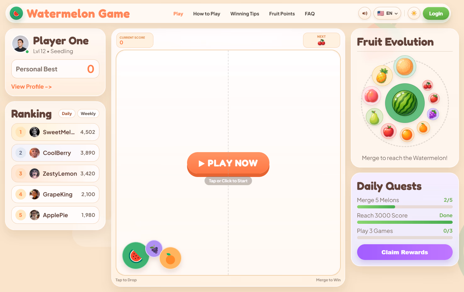 Watermelon Game HD: Fun Fruit Merge Puzzle Online
