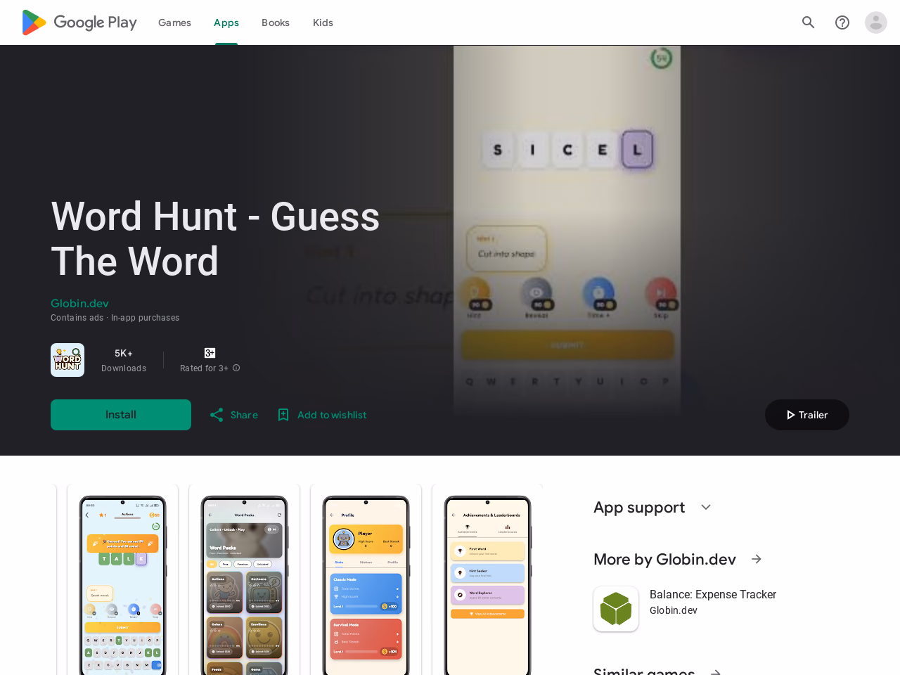 Provides daily words, packs, timed modes, and boosters to guess words