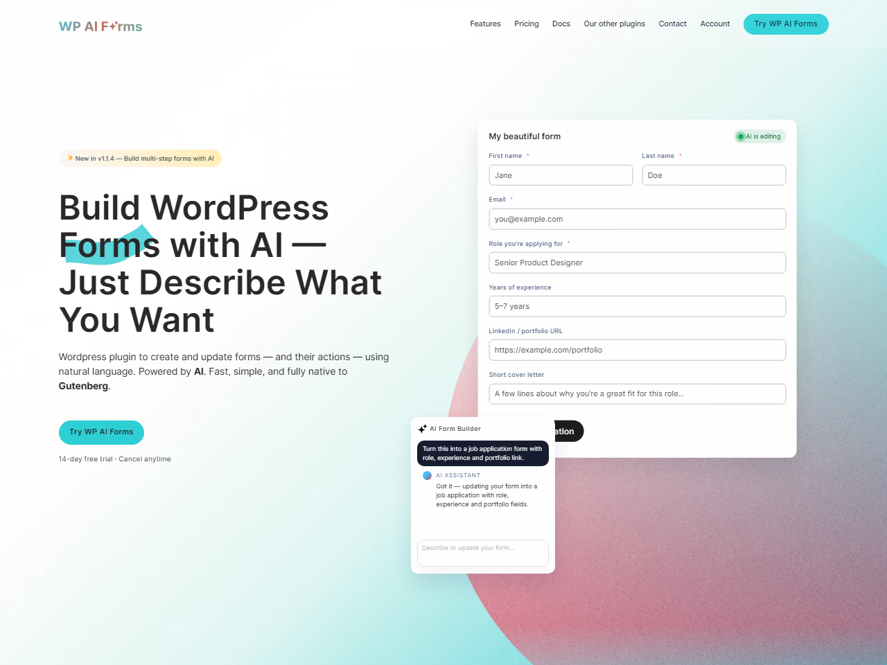 Build WordPress Forms with AI — Just Describe What You Want.